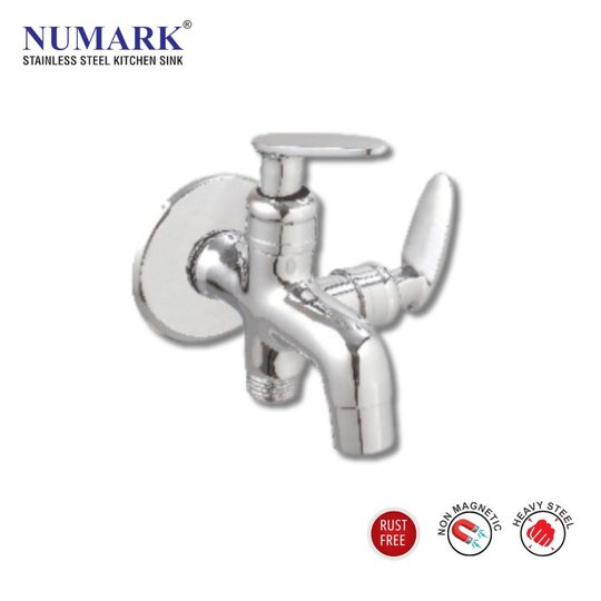 The Bib Cock Double Handle Tap by Numark Kitchen Sink a premium-quality sanitary fitting designed to combine durability, elegance, and convenience. Manufactured using high-grade brass and stainless steel components, this tap offers long-lasting performance, excellent resistance to rust and corrosion, and smooth water flow control for everyday use.